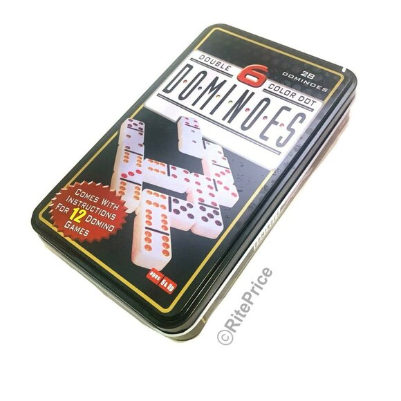 > This double-six domino set includes 28 tiles in a tin box for 2-4 players to play together.