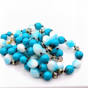 Double Strand Blue and Black Necklace, Mid Century Vintage, Funky Plastic Beads