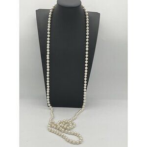 This double-strand faux pearl necklace offers a classic elegance suitable for both professional and formal settings. With a generous 29-inch length, it can be worn as a single long strand or doubled for a layered look. Its timeless design makes it a versatile accessory for enhancing various outfits.