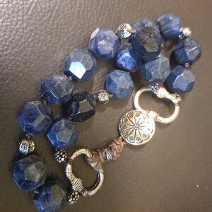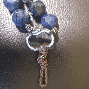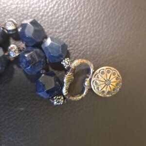 Double strand Lucky Brand navy and silver tone bracelet. 7.5 inches, large navy blue beads with silver tone small bead accents. Western style toggle clasp with leather trim. New, never worn.