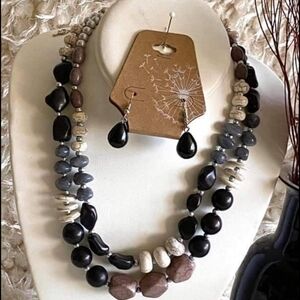 Double Strand Natural Stone Bead Necklace Earrings Set