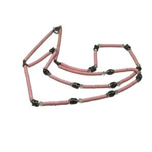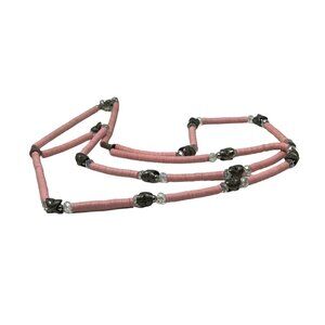 Double Strand Necklace Pink Flat Beads Crystal and Silver Stations