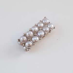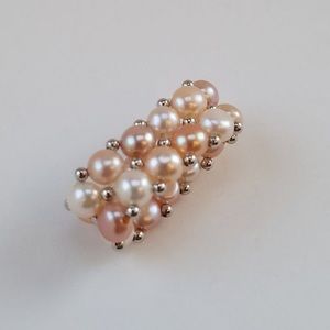 ‼️Pearls are button shaped, double strand & strung together with sterling silver beads on elastic wire. Ring is approx. 3” around & is stretchable to fit most finger size‼️