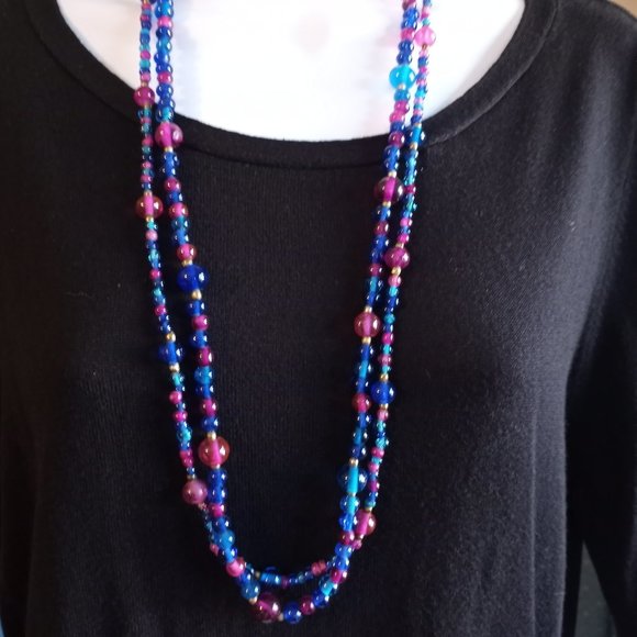 Double Strand Purple Royal Blue Teal Beaded 30" Necklace-Item #211