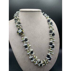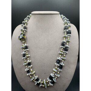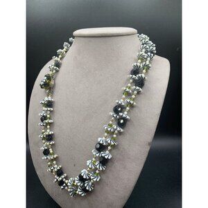 Double Strand Retro Necklace Flower Beads Plastic Glass Green White Black Gold