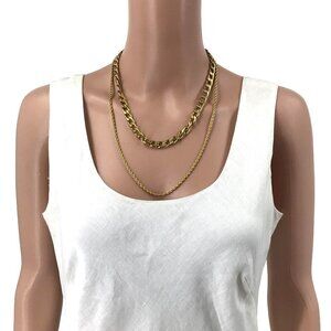 This Double Strand Rope Chain Necklace in Gold Tone is a stylish, versatile accessory perfect for any occasion. Its elegant design exudes timeless sophistication and glamour.