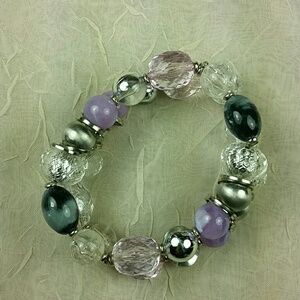 Bold stretch bracelet featuring oversized pink, purple, gray, and silver-tone glass beads. The mix of crackled, smooth, and metallic finishes gives this piece a rich, layered look. Perfect for adding Mob Wife glam, Y2K statement energy, or cocktail sparkle to your outfit.