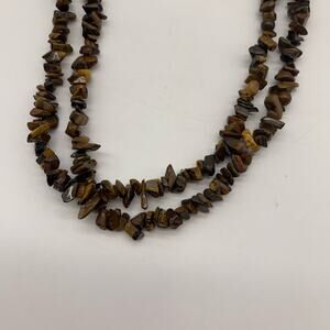 Double Strand Tiger's Eye Chip Necklace Sterling Silver Clasp. In great pre-owned condition. See photos for details on condition and measurements.