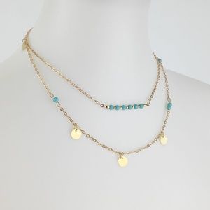 Beautiful BOHO 2 Layered Chain Gold Tone Turquoise Colored Beads Fashion Jewelry with Extender Chain and Lobster Clasp