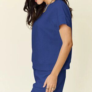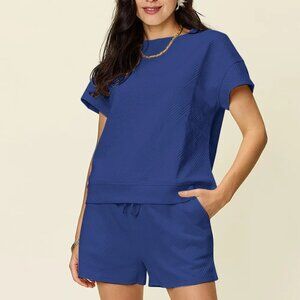 Double Take Full Size Texture Short Sleeve T-Shirt and Drawstring Shorts Set