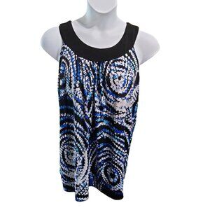 Double Take Womens Blue & Black Patterned Sleeveless Top Size 1X