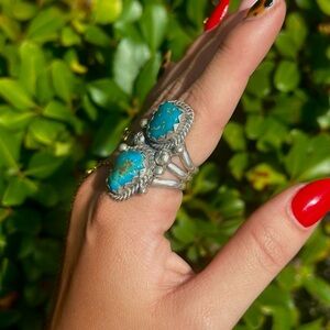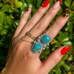 Southwestern style, one of a kind, sterling silver and turquoise ring. Size 8.5. Brand new with unique style!