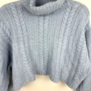 Double Zero Baby Blue Oversized Cropped Knit Turtleneck Sweater Women's Small