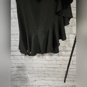 Double Zero Black One-Shoulder Ruffle Dress – Chic Cocktail Party Mini Medium