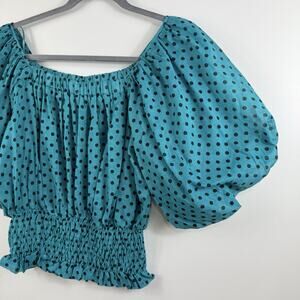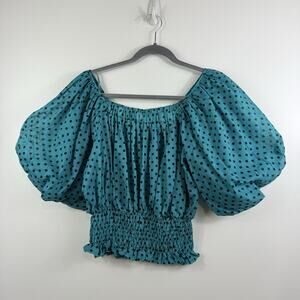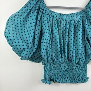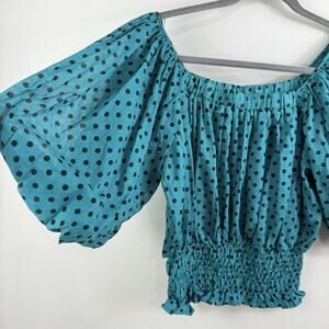 Double Zero Blue Polka Dot Puff Sleeve Crop Top Medium Off The Shoulder Smocked