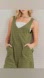Double Zero Boho Linen Side Pockets Sleeveless Flowy Moss Colored Romper