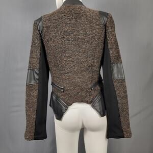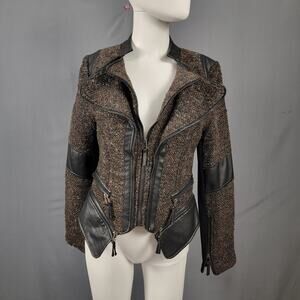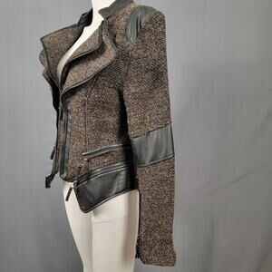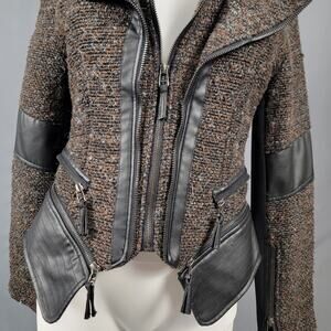 Double Zero Faux Leather Bouclé Moto Jacket M Brown Black Structured Street Luxe
