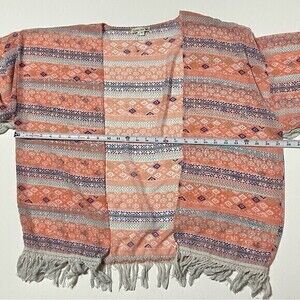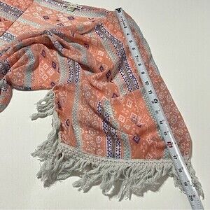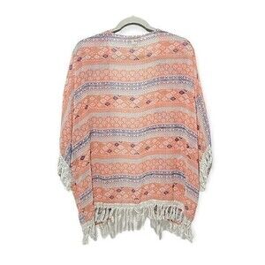 Double Zero Fringe Lightweight Cardigan Kimono Coral Size M