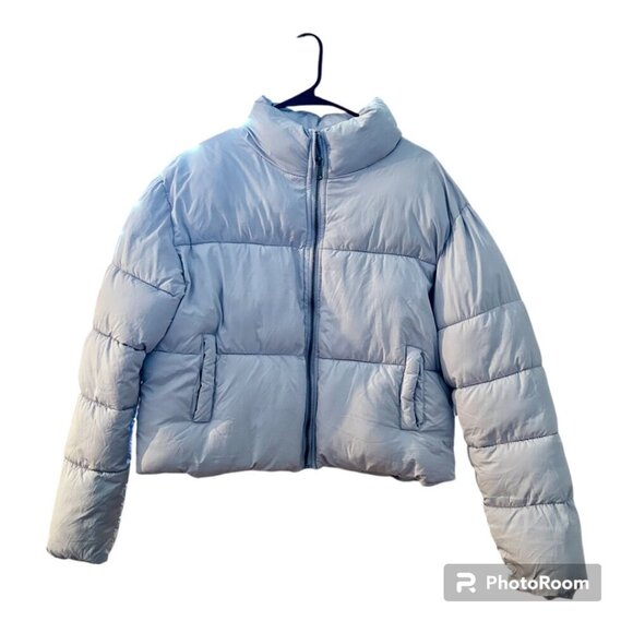 Double Zero Lilac Quilted Puffer Jacket Coat Women Size Medium Cropped High Neck