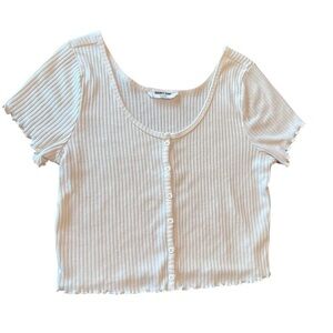 Double Zero Lovely Ribbed Button Front Crop Top Size L