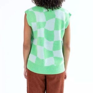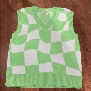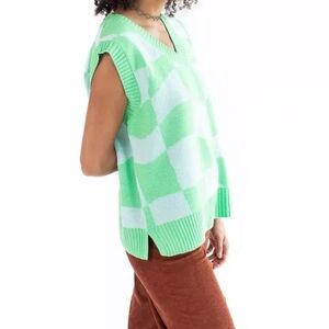 Double Zero Oversized Green White Checker Sweater Vest Size Medium