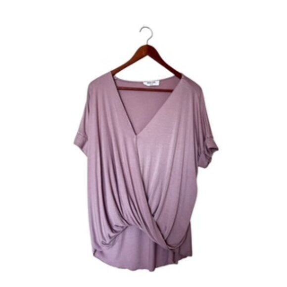 Double Zero Tunic Mauve in Color Ruched Size Large Measurements Back Length 29 Front Length 24 Pit to Pit 28 N61