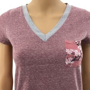 Double Zero (S) Heather Pink Floral Pen Pocket Tee V-neck Shirt Top Short Sleeve