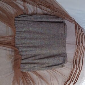 Double Zero, Size M, Brown mini skirt w elastic waist, 2 layers sheer fabric ovr