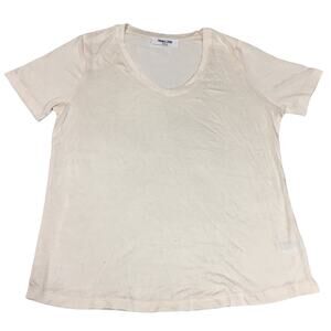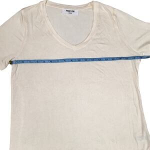 Double Zero T-Shirt Ivory Short Sleeve Round Neck Stretch Knit Women's Small Top