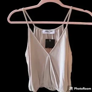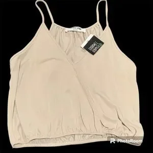 Double Zero Cropped Elastic Hem Tank Size Small New with Tags Cream Color 65% Modal 35% Polyester