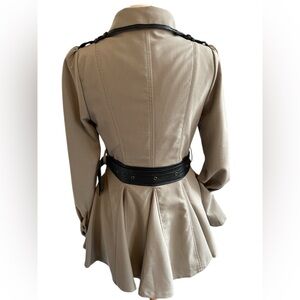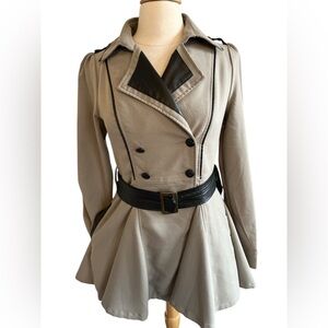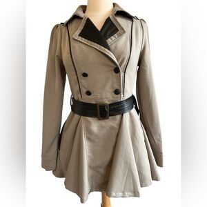 Double Zero Taupe Trench Coat w/Flared Silhouette & faux leather trim Size Small