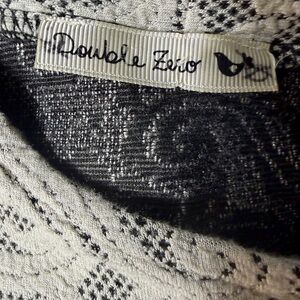 Chic and feminine Double Zero lace bomber jacket in white floral lace overlay with a black lining. Features an asymmetrical front zipper, zippered cuffs, and ribbed knit trim at the hem and sleeves. Lightweight and versatile — perfect for layering over dresses or styling with jeans for a casual yet polished look.
