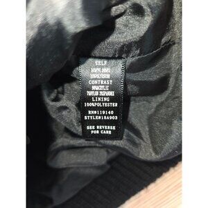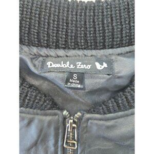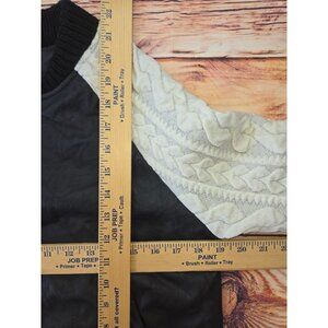Double Zero Womens Black Faux Leather Jacket Small Cream Cable Knit Sleeves