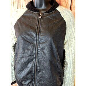 Double Zero Womens Small Black Faux Leather Jacket Cream Cable Knit Sleeves