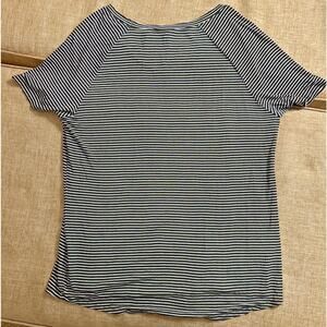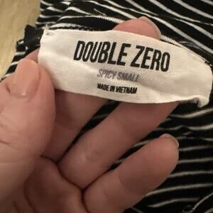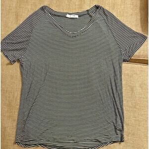 Double Zero Women's T Shirt Tee Top Black White Stripe V Neck Minimalist Quiet S