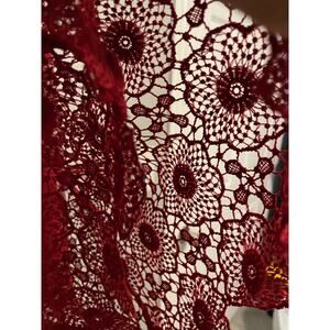 Double Zero Womens Tunic Size Small Red Floral Crochet Lace Sheer Whimsical READ