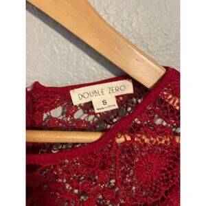 Double Zero Womens Tunic Small Red Floral Crochet Lace Sheer Fairy Romantic READ