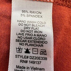 Double Zero Womens V-Neck Short Sleeve Tee Burnt Orange Size Small
