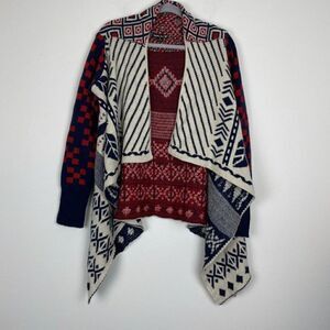 Red and blue Aztec print, cute Bohemian sweater for everyday wear