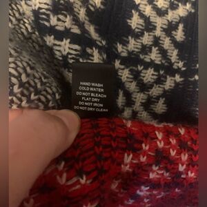 Red and blue Aztec print, cute Bohemian sweater for everyday wear