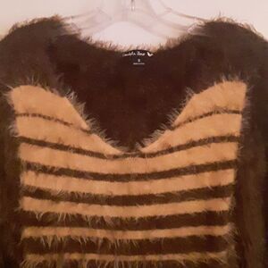 Eyelash sweater. It has long sleeves, brown, with tan stripes, and oh... so, so soft to the touch. It's perfect for fall and winter. Would look great with some jeans and brown boots. Pre-owned in excellent condition.
