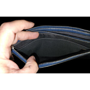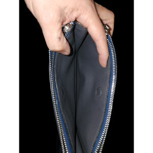 Double Zip Wallet Clutch In blue Metallic Caviar Leather