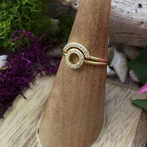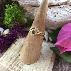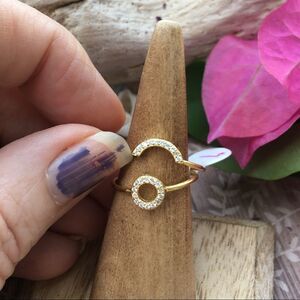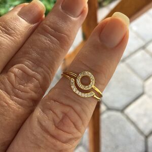 Sterling & CZ open circle double band ring 18k overall Rhodium covered