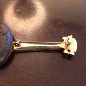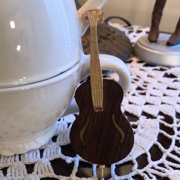 Double bass or contrabass guitar made of Wood and gilded gold tone brooch