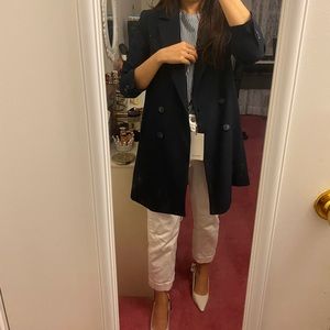 Lightweight navy jacket that’s suitable for fall/spring or warmer winter days. Brand new and not worn!!!