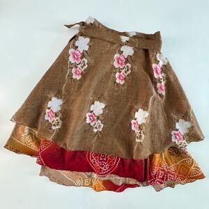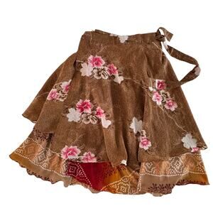 Floral wrap skirt. Double layer. Made in India. 80% silk. Pattern clash like a boss. Approximately 48” laid out plus the ties. Could accommodate size XS-M.