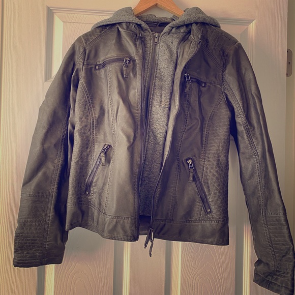 Selling this double layered jacket with nice detailing and material. It’s a grey tone and entire hoody (second layer) can be removed.