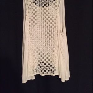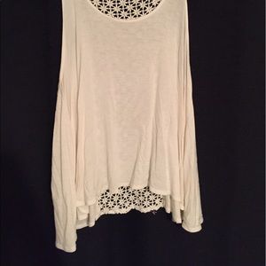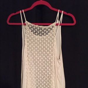 Double strap off white tank. There is an eyelet inset in back. Fairly Aline. Very soft and comfortable. Very flattering. In perfect condition. No tags but never worn.