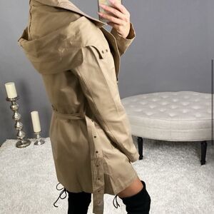 Double Breasted Trench Coat Jacket with belt and removable hood