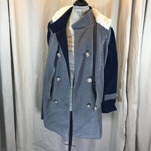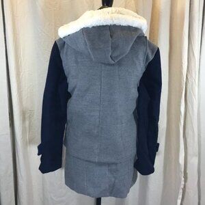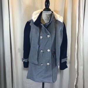 Double-Breasted Hooded Coat With Faux Fur Lining & Button Details Peacoat nwot